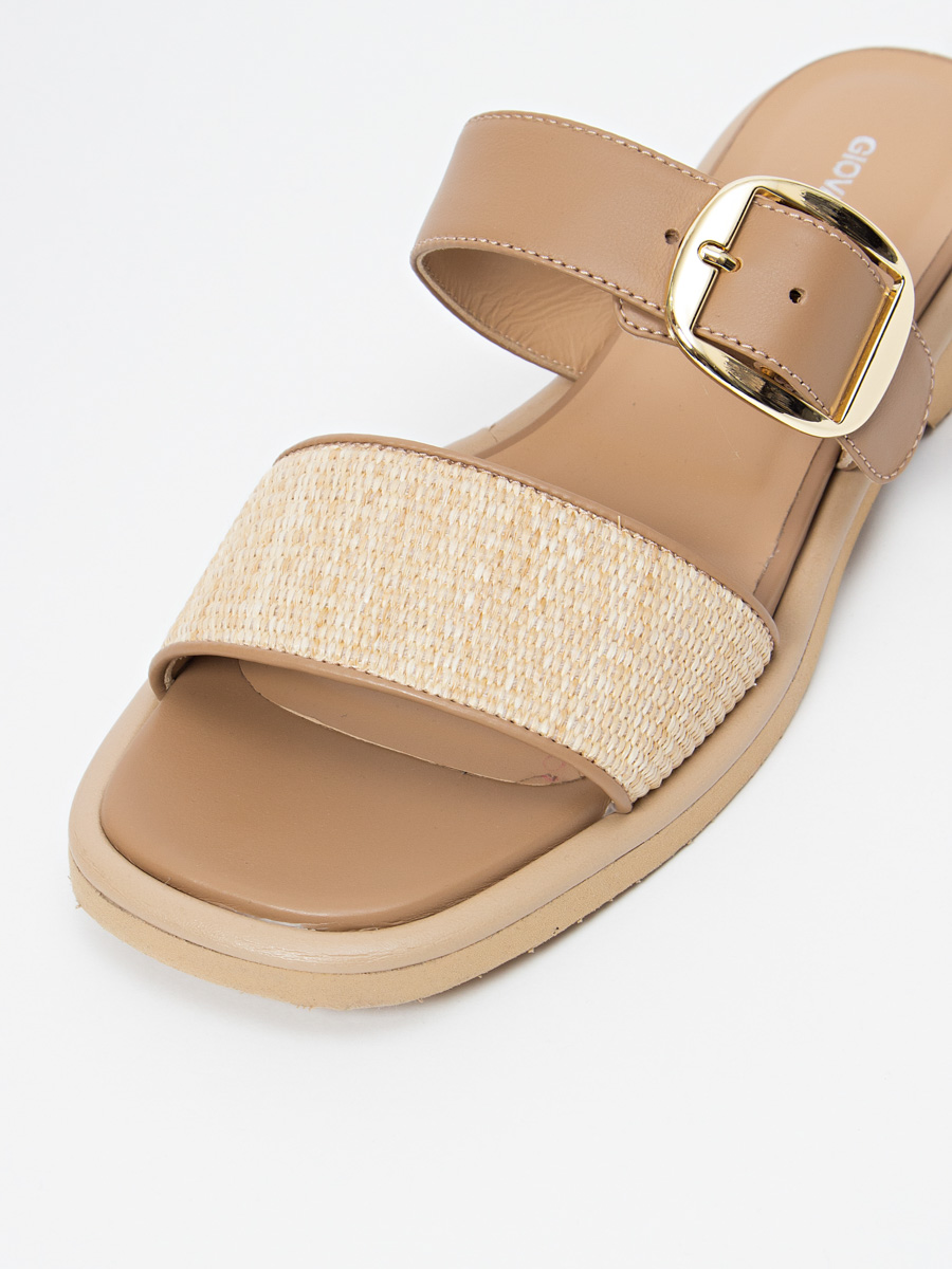 | Состав | Кожа натуральная 100% Рафия 100% , Резина 100% |